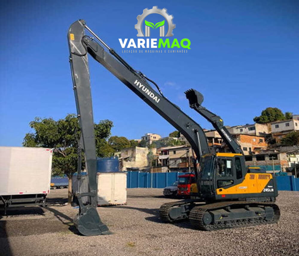 Descrição: A Escavadeira Long Reach, ou, Escavadeira de Braço Longo é uma máquina tipo escavadeira convencional, porém, seu grande diferencial é o braço mais alongado alcançando profundidades e distâncias maiores. Na Variemaq você encontra escavadeiras de até 18 metros de alcance. Este tipo de máquina é muito utilizada em limpeza de lagos, escavações de grandes profundidades, entre outros.